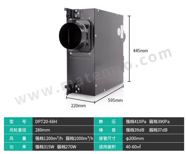 - 新风量:1000m3/h/1200m3/h