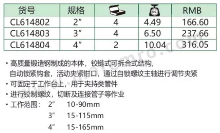 - 夹管能力:15~165mm