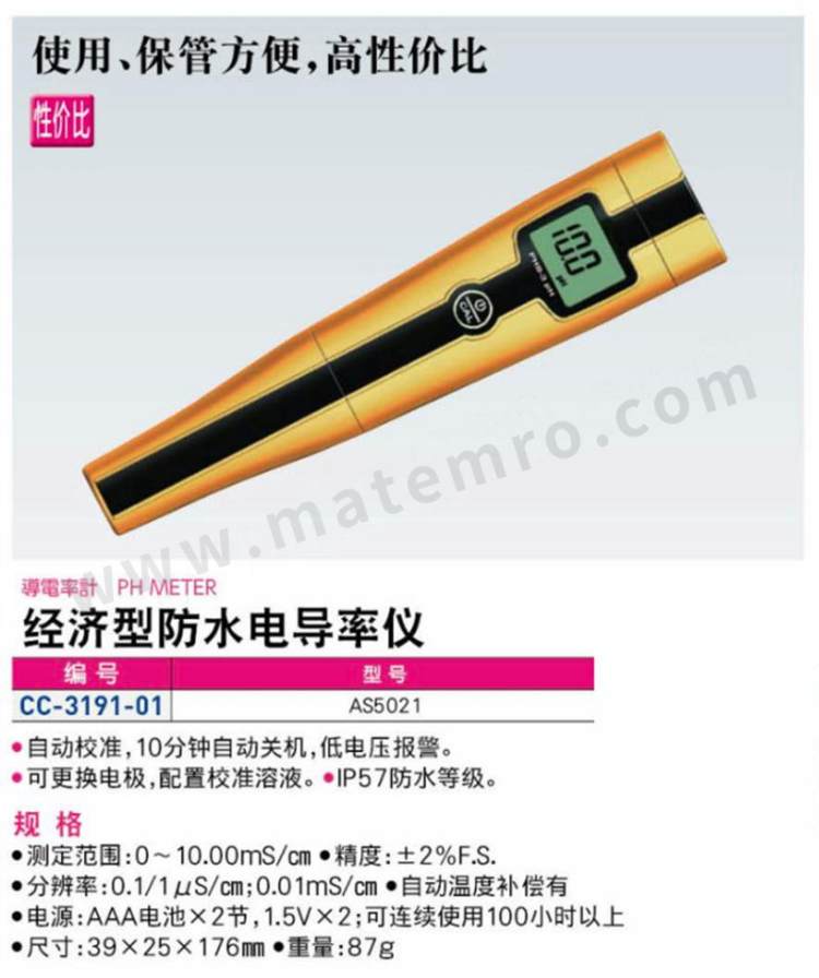 - 测量范围:0~10.00mS/cm