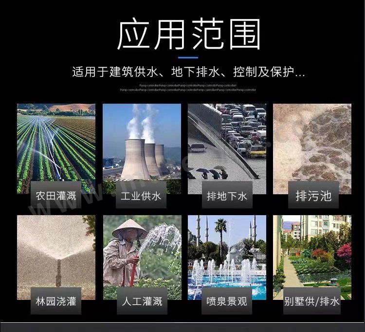 - 应用领域:农田灌溉 工业供水 排污池等