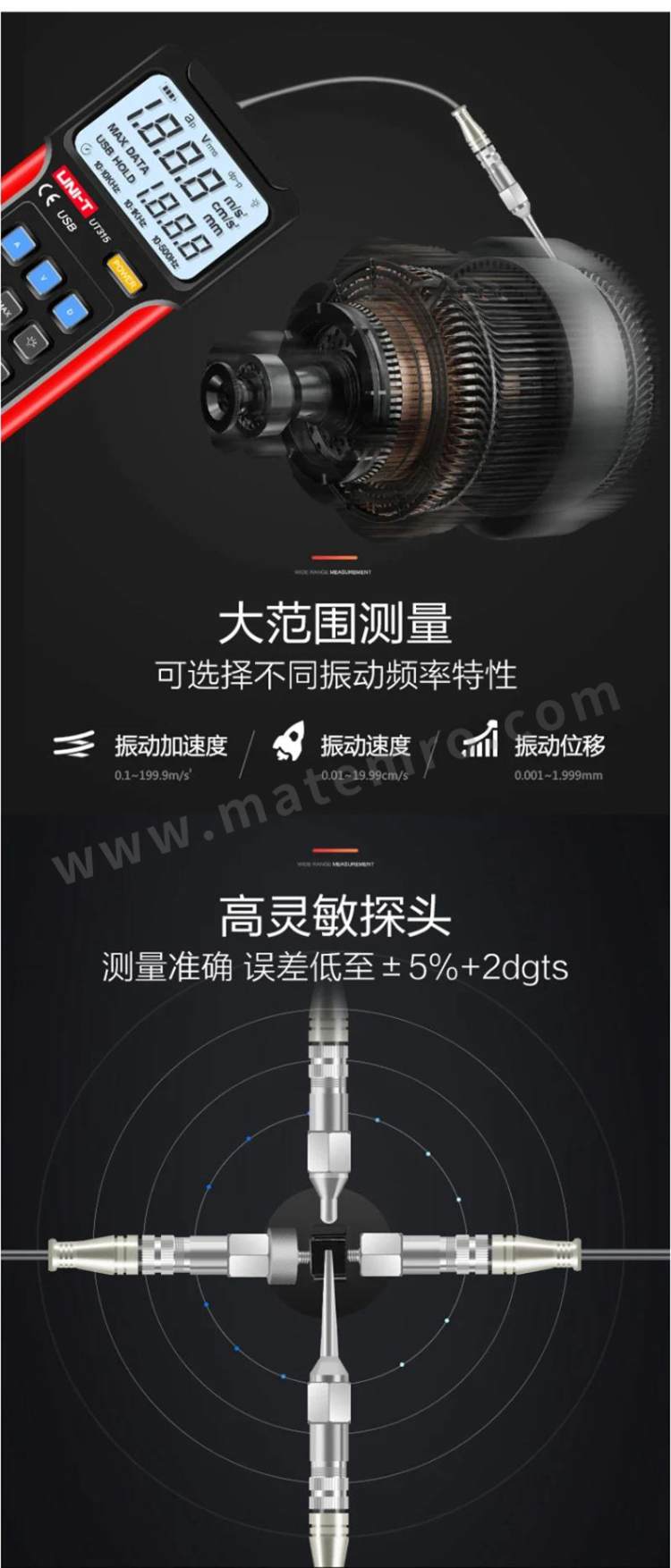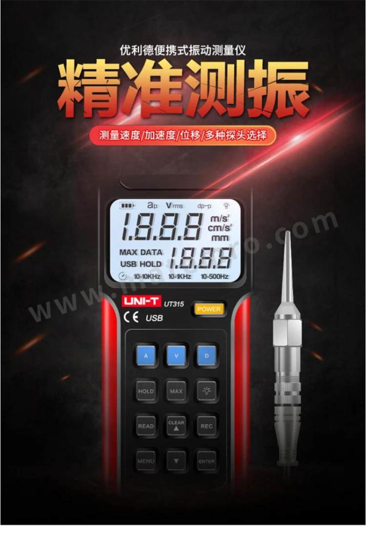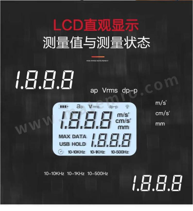 - 其他属性:加速度测量范围:0.-199m/S² 速度测量范围:0.01-19.99cm 测量误差:≤±5