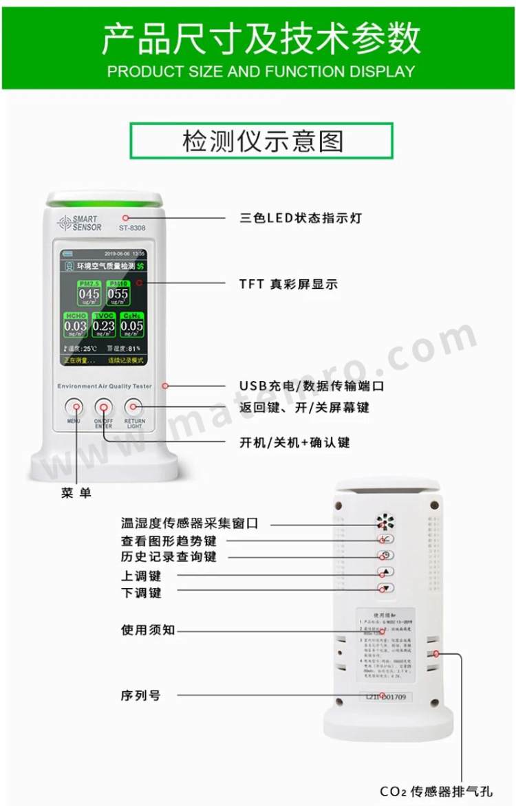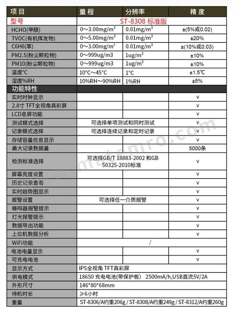 - 其他属性:分辨率 测量范围(ppm) 类别