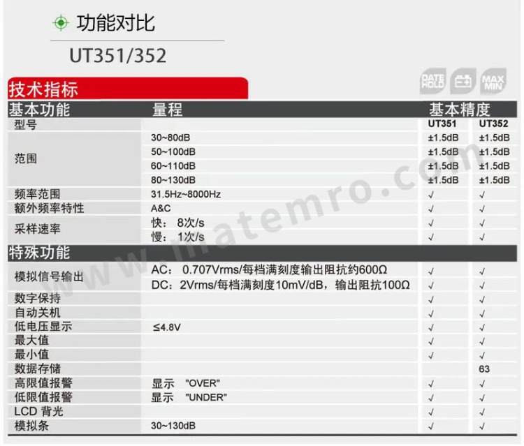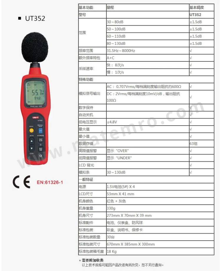 - 其他属性:测量范围:30-130db 精度:±1.5db